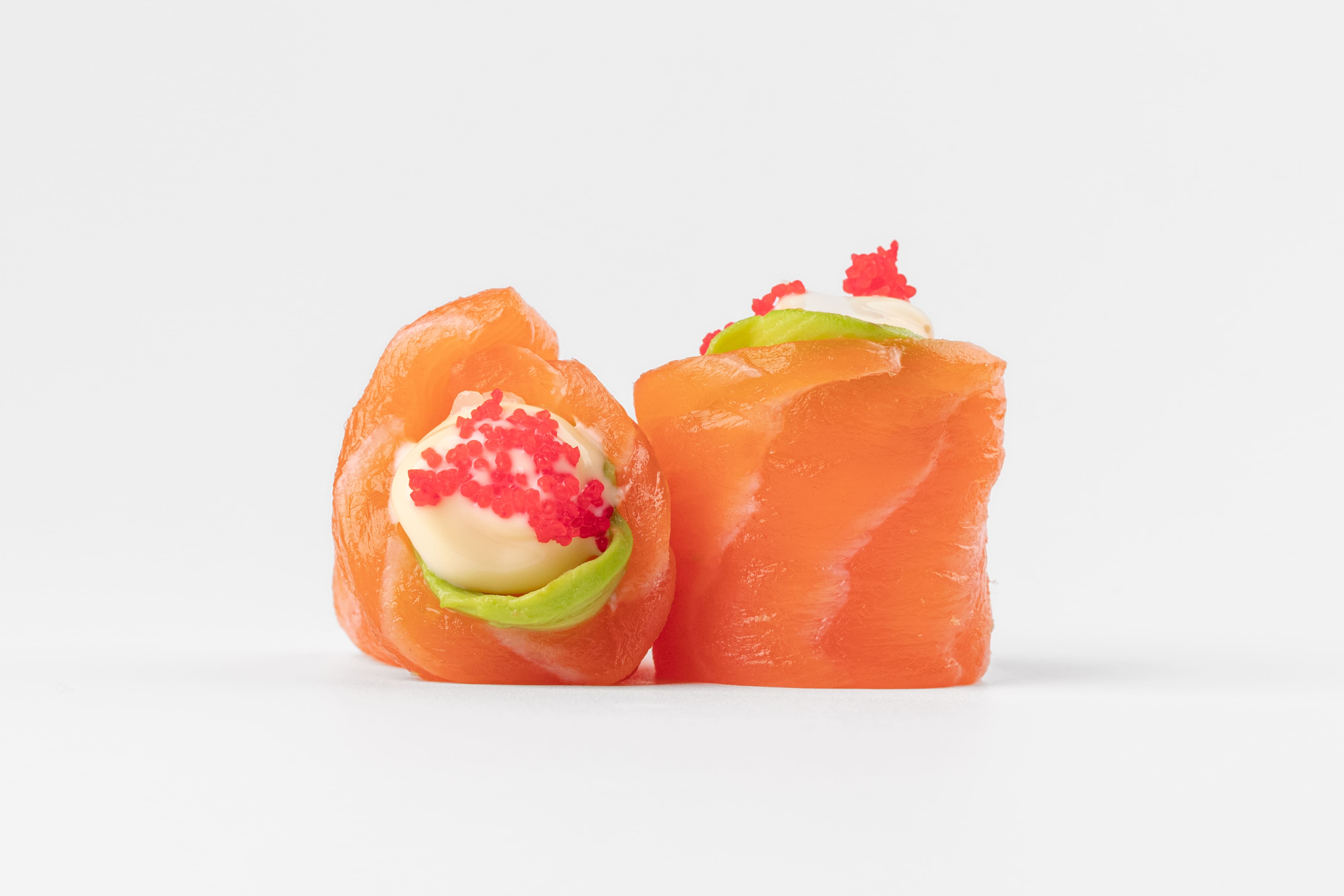 Шарик риса с лососем, авокадо, икрой тобико и майонезным соусом (3 шт.)