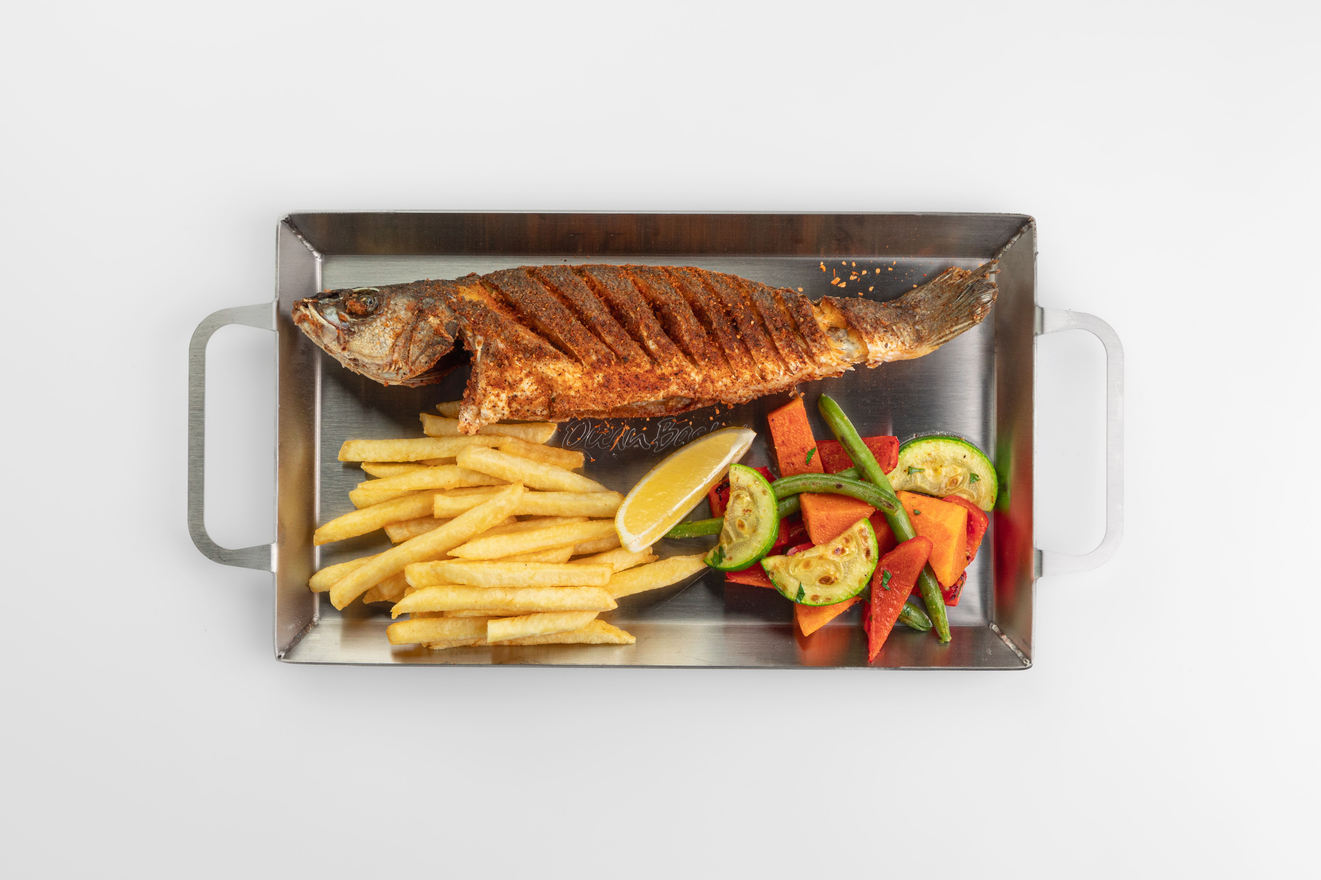 Целая рыба, обжаренная до хрустящей корочки, с лимонно-кремовым соусом и двумя гарнирами. В описании указан примерный вес блюда в сыром виде. Вес и вид могут меняться в зависимости от способа приготовления и других условий.